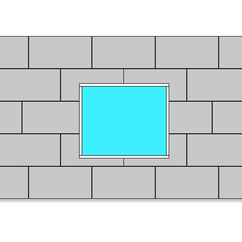 Posebno smo pozorni pri pravilnem polaganju plošč okoli okenskih odprtin, kjer plošče lepimo na fasadno površino tako, kot je prikazano na sliki (ploščo zarežemo v obliki črke L).
